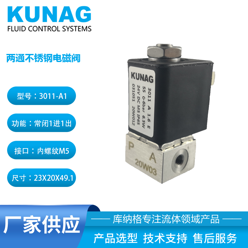 3011-A1型為直動式柱塞電磁閥。止動器與柱塞導(dǎo)管焊接在一起,以提高耐壓性和密封性,根據(jù)不同的應(yīng)用,可以選擇各種密封材質(zhì)。公司專用底板接口使該閥可組合安裝在底板上,節(jié)省空間,可選插管接頭式連接軟管,電磁線圈采用聚酰胺封裝,該閥的安全防護(hù)等級為 IP65。