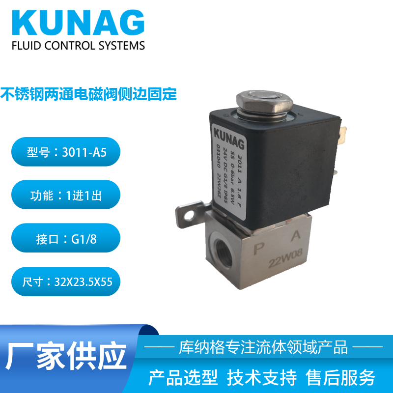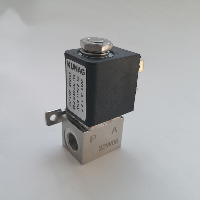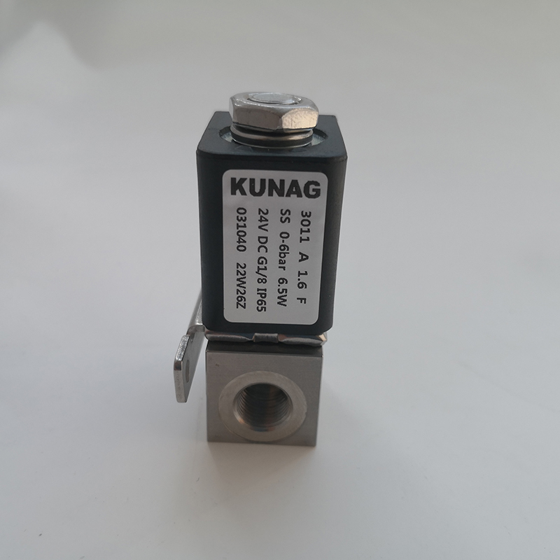 3011-A5型為直動(dòng)式柱塞電磁閥。止動(dòng)器與柱塞導(dǎo)管焊接在一起,以提高耐壓性和密封性,根據(jù)不同的應(yīng)用,可以選擇各種密封材質(zhì)。公司專(zhuān)用底板接口使該閥可組合安裝在底板上,節(jié)省空間,可選插管接頭式連接軟管,電磁線圈采用聚酰胺封裝,該閥的安全防護(hù)等級(jí)為 IP65。