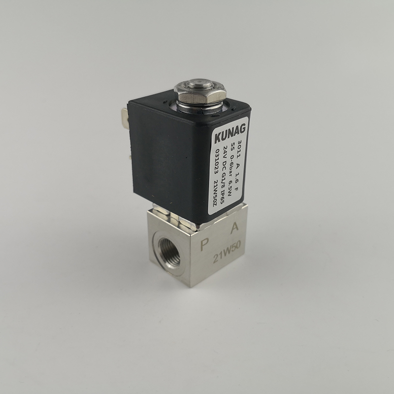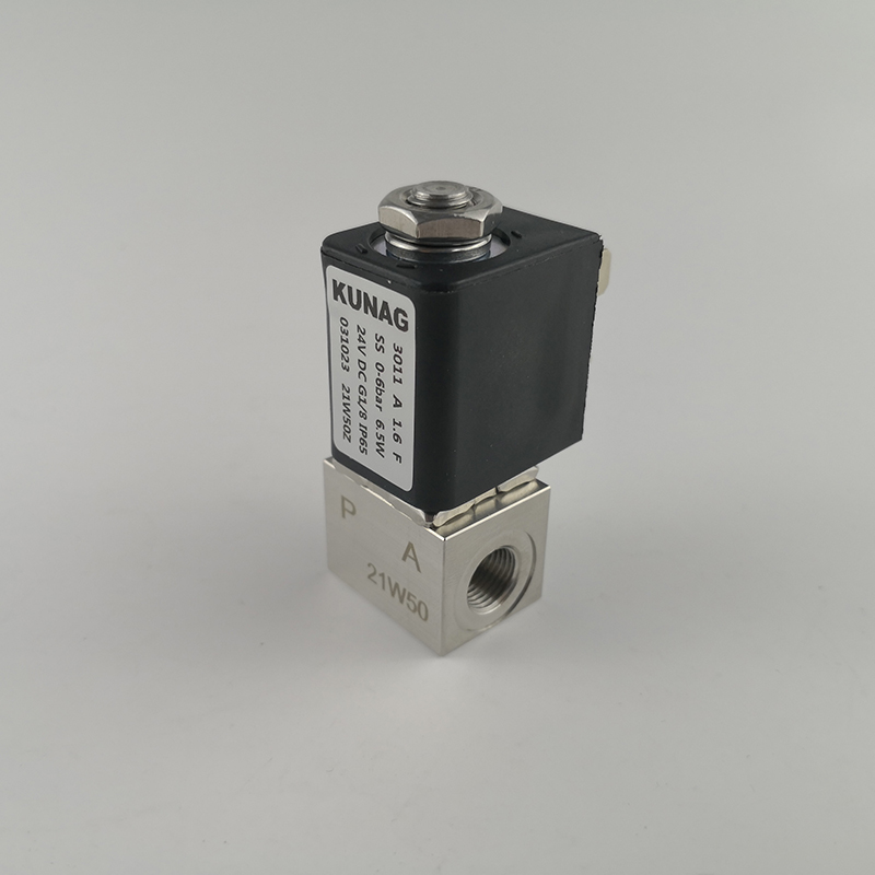 3011-A2型為直動(dòng)式柱塞電磁閥。止動(dòng)器與柱塞導(dǎo)管焊接在一起,以提高耐壓性和密封性,根據(jù)不同的應(yīng)用,可以選擇各種密封材質(zhì)。公司專用底板接口使該閥可組合安裝在底板上,節(jié)省空間,可選插管接頭式連接軟管,電磁線圈采用聚酰胺封裝,該閥的安全防護(hù)等級(jí)為 IP65。