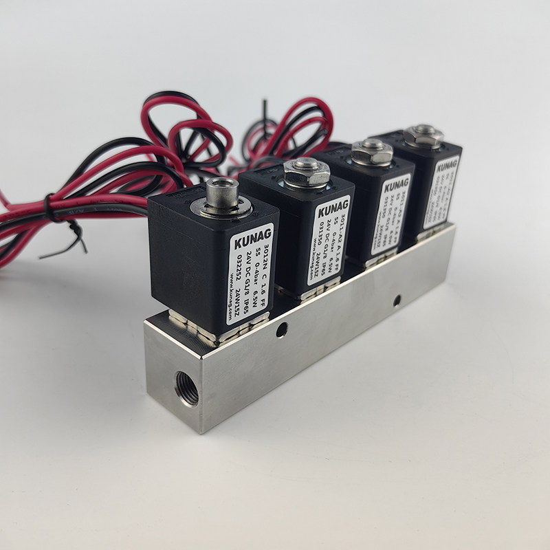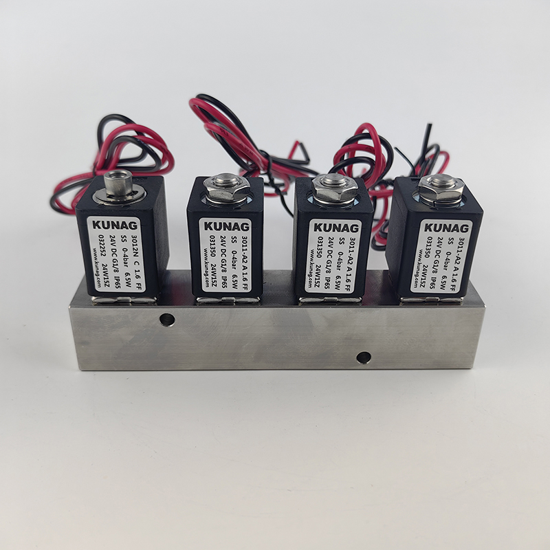 飛線線圈,微型閥組兩通電磁閥切換1進(jìn)4出 4進(jìn)1出,集成閥到多進(jìn)多出,不銹鋼閥體。